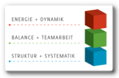Neben ausgewählten, qualitätsgeprüften praktischen Teamübungen (indoor- und outdoor)